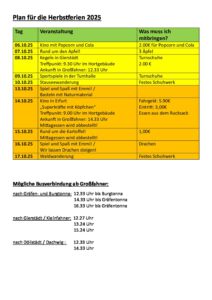 Plan für die Herbstferien2025